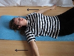Die Ausgangsstellung: Rückenlage, Kniestellung gebeugt oder gestreckt (was bequemer ist). Die Arme parallel zum Körper auf den Boden legen.