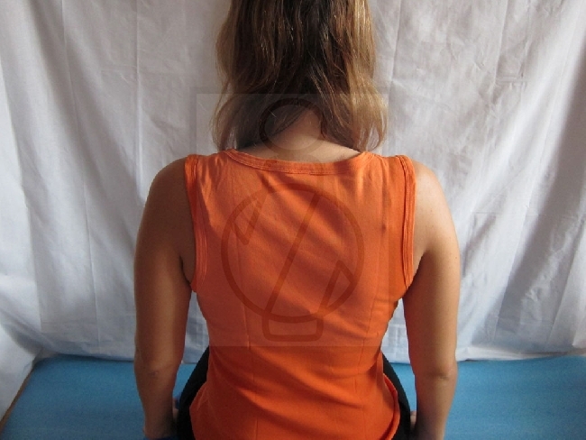 3. Ausgangsstellung- 3A. Beim Einatmen ziehen wir beide Schulterblätter zusammen. Wir bemühen uns die Schulterblätter so viel wie möglich zusammenziehen. - 3B. Beim Ausatmen wieder in die Ausgangsposition stellen. - 3A. Diese Übung 6 mal wiederholen.
